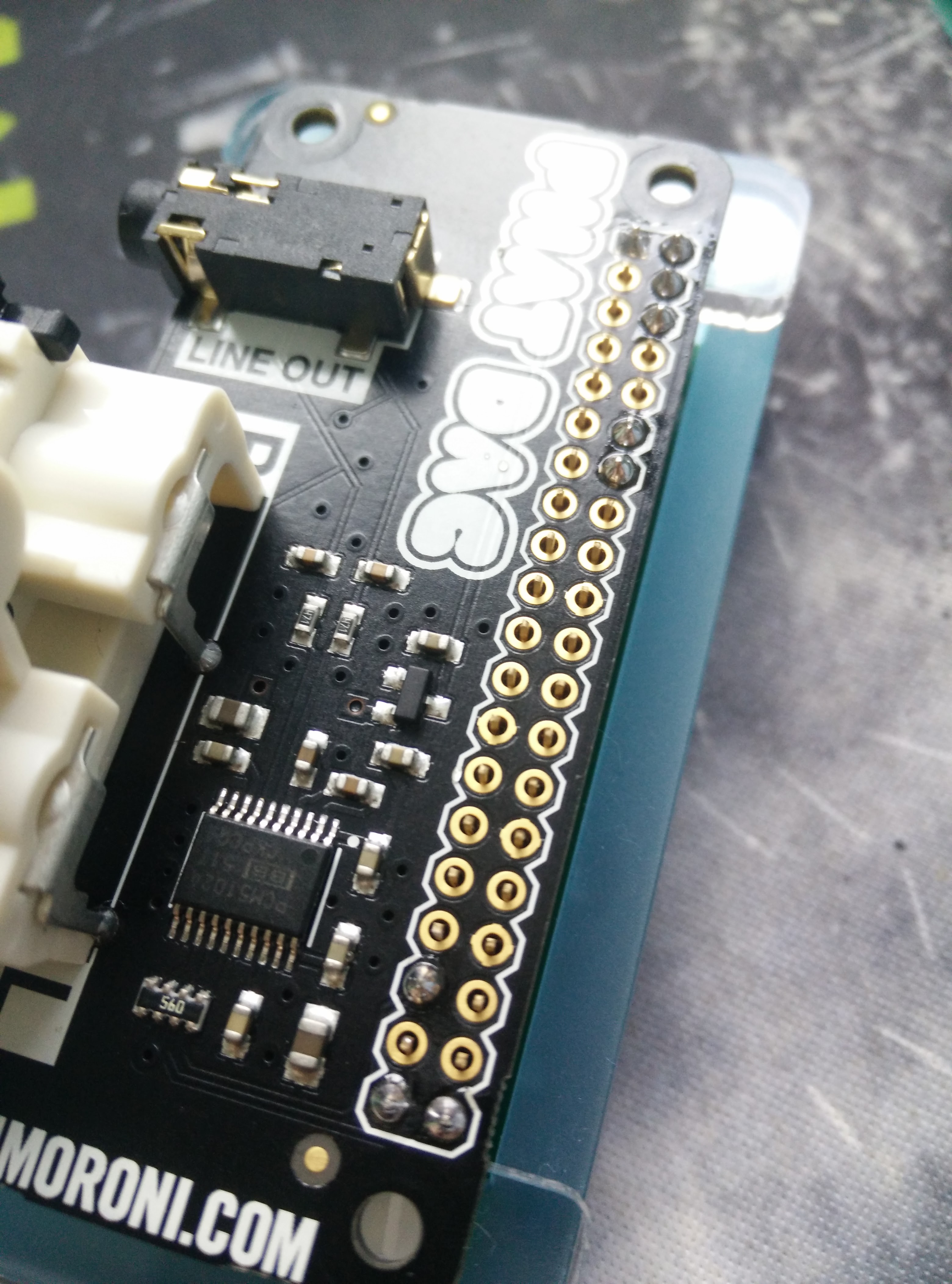 I soldered it pretty minimally at first, I ended up removing the header that you can see in the image above, in favour for a modified long pin one which you can see below. The thing sounds better than my ChromeCast Audio - very happy with it, also happy with the way it looked stacked ontop of my Pi Zero+PiBow Zero. The project the pirates suggested with this thing is an AirPlay receiver for some speakers which may not be internet-enabled, bringing new life to music around your home. Great value, simple to assemble and setup. Winner in my book.